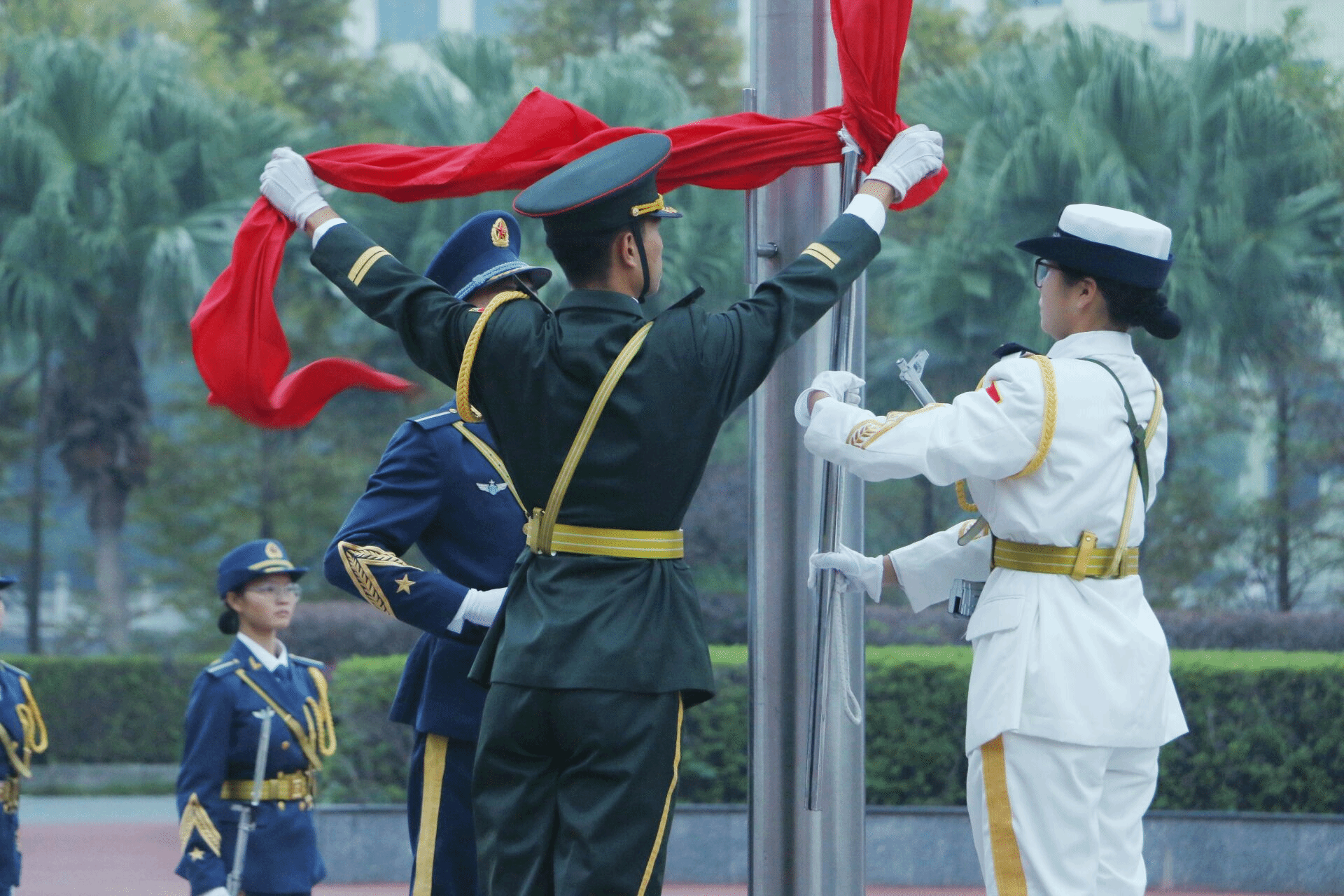 2024年11月4日清晨,升旗仪式在红旗广场隆重举行,雄壮激昂的国歌声,护旗手昂首阔步,身姿挺拔如松。