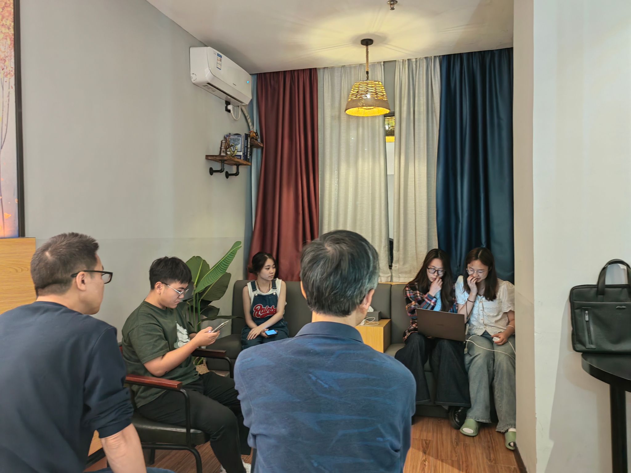 火车上,同学们对即将到来的外出实践充满了期待,老师们来到车厢里对同学们的见习作品策划进行指导要求,同学们对拍摄计划进行完善、整合,不停翻找着手机中的资料,当然,在网差的火车上一直看电子屏幕的后果就是——成功的晕车了......
