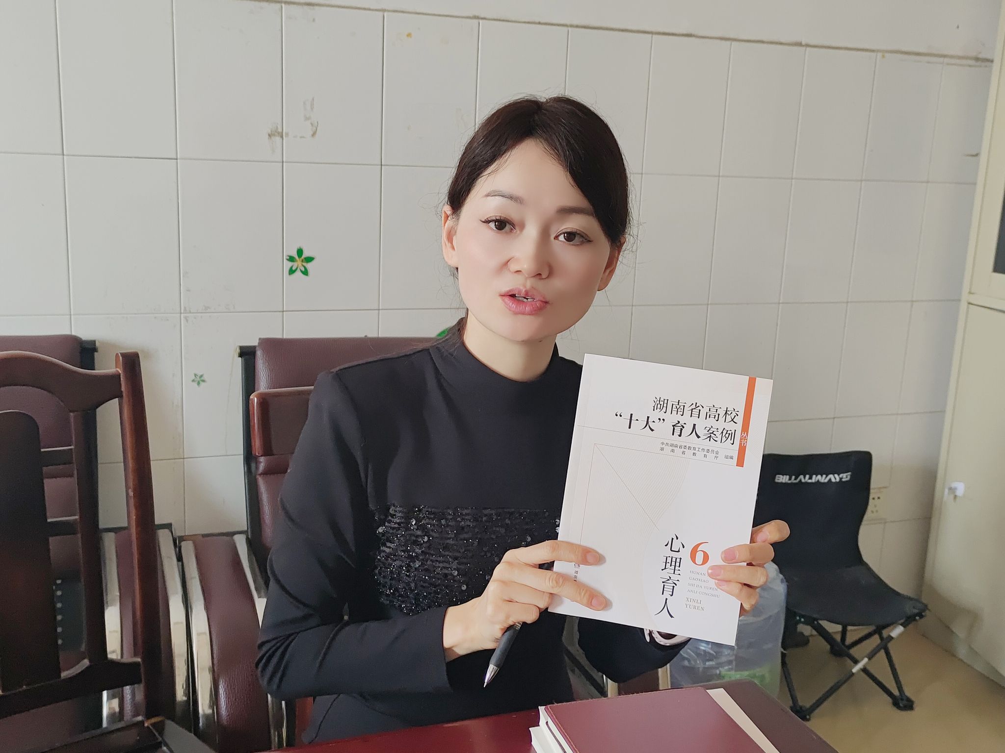 尹艺蓓老师分享的书是《湖南省高校“十大”育人案例》的文化育人。这本书的内容让她印象深刻,她表示,从书中的文化育人案例我们可以衍生至本校的校园文化育人工作,将师生的话剧栏目与校史文化相结合,让员工的爱党爱国爱校教育行动走深走实。