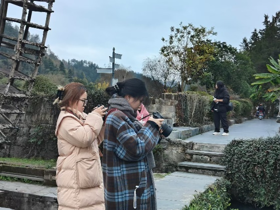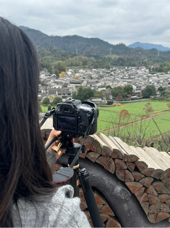 11月20日,2022级网新专业同学见习的第二天。第一天各组同学在老师的指导下对已定选题进行进一步的整理精进,在检验可行性后进行了初步拍摄。怀揣着对徽派古村落的热爱与探索之心,今天各个小组忙碌在各自选题上。穿梭在古徽州的西递,仿佛踏入了一幅动人心魄的水墨画卷。抬头望去,各种飞檐翘角的建筑交相呼应,构成了西递独特的风景线。阳光透过古老的马头墙,洒在青石板路上,映出斑驳的光影,仿佛给我们的见习之旅增添一抹神秘的色彩。