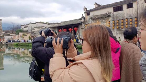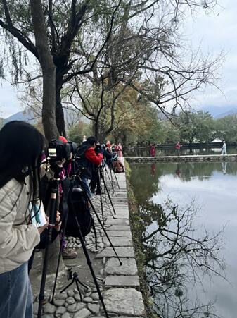 最后一组同学在南湖书院、承志堂等标志性景点拍摄人流空镜。不同时段,捕捉游客于古村的画面,清晨宁静、白天热闹、傍晚温馨,为宣传推广与文化研究积累素材。通过这组同学的镜头,我们不仅看到了南湖书院与承志堂在不同时段的美丽瞬间,更感受到了宏村古韵的深厚与独特。这些画面不仅定格了游客们的美好回忆,更成为了宏村历史文化传承的重要载体。