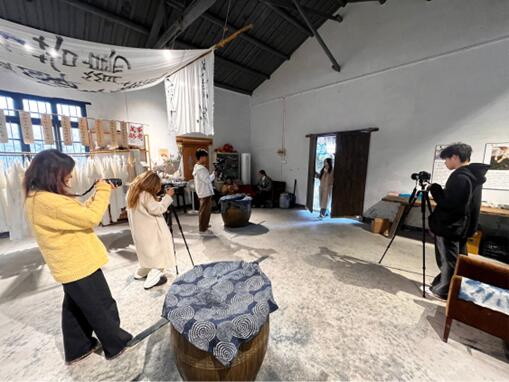 除了古韵、艺术与祠堂文化,宏村还隐藏着一项古老的非遗技艺——扎染。同学们在拍摄过程中,有幸体验了扎染的制作过程。他们学习如何将布料进行折叠、捆绑,然后用染料进行浸染,最后解开捆绑的布料,呈现出独特的图案和色彩。这一过程中,同学们不仅感受到了扎染技艺的魅力,更体会到了传承非遗文化的重要性。