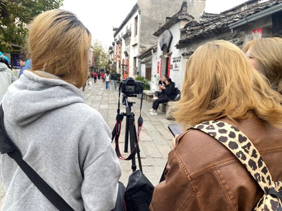 还有一组同学研究茶文化,她们在拍摄过程中不仅捕捉了茶园的美景,还通过镜头展现了茶叶从采摘到泡制的全过程。同时,他们还拍摄了宏村的建筑空镜头和分镜,将茶文化与古村落的美景巧妙地结合在一起。他们的作品不仅让人感受到了茶文化的魅力,更让人对宏村的古韵流芳有了更深的了解。