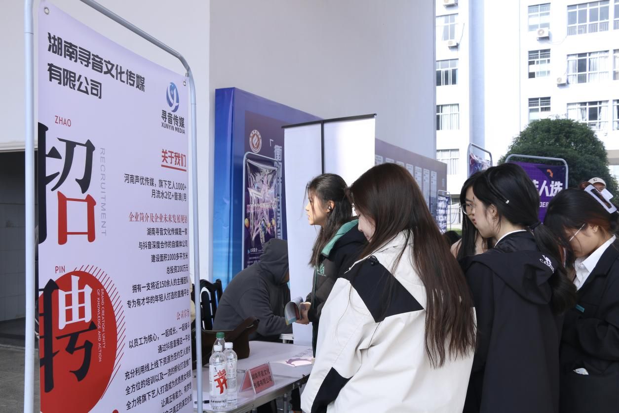 本次招聘会共邀请了南岳融媒、寻音传媒、星视文化传媒有限公司等15家企业参与,提供了新媒体运营、市场营销、短视频策划、视频主播等众多招聘岗位。新闻与传播公司党总支书记彭晖、党总支副书记董自雄、学工办副主任兼团委书记封伟为、员工辅导员刘国杰参加了此次招聘会。