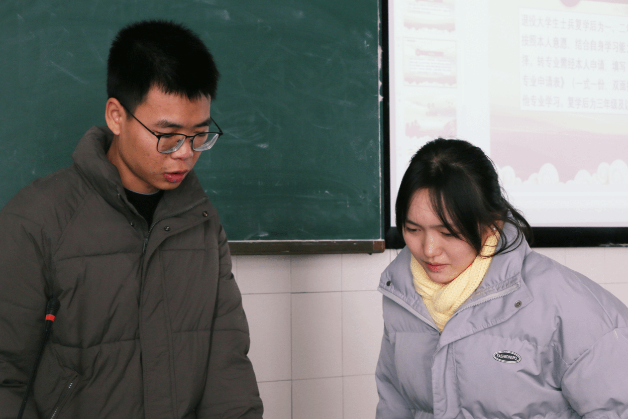 刘国杰老师全面系统地介绍了入伍的基本流程、体检要求、入伍前准备工作,入伍后经济、升学复学、就业等优待政策。他希望有越来越多的新传学子能够参军入伍,到部队中去锻炼自己。