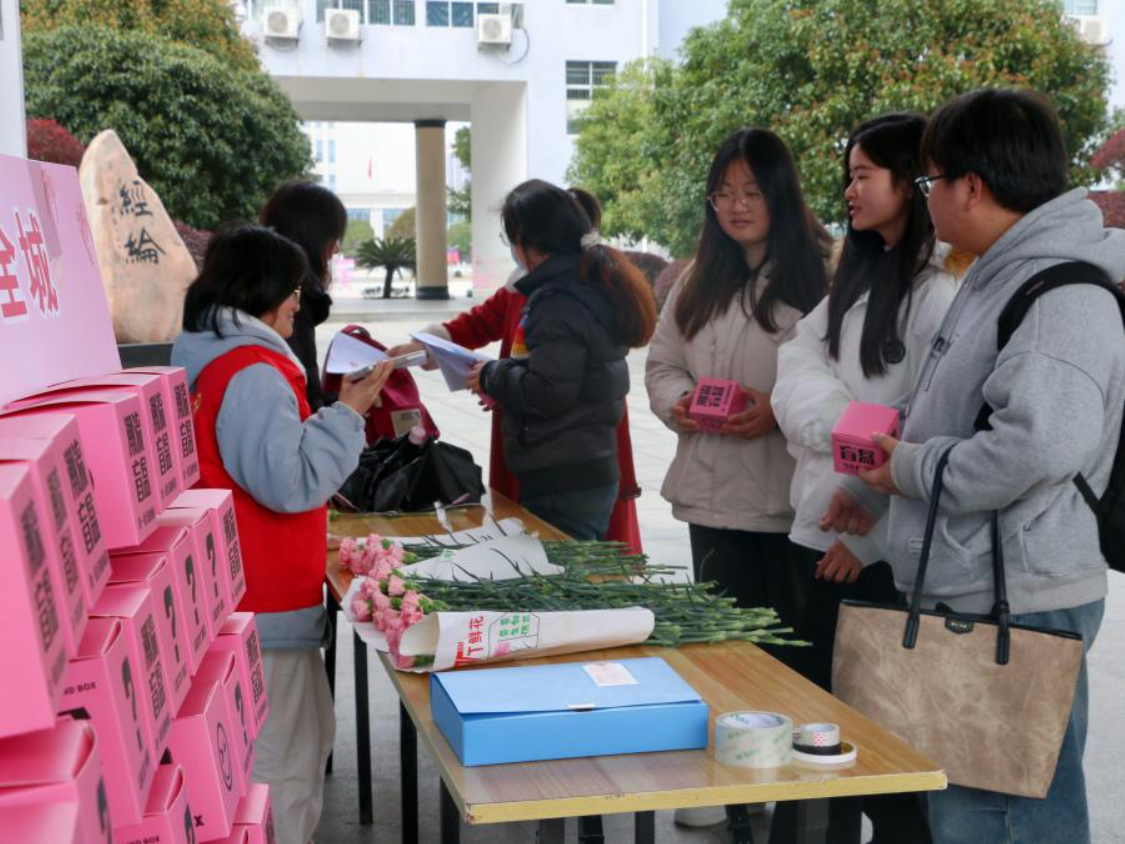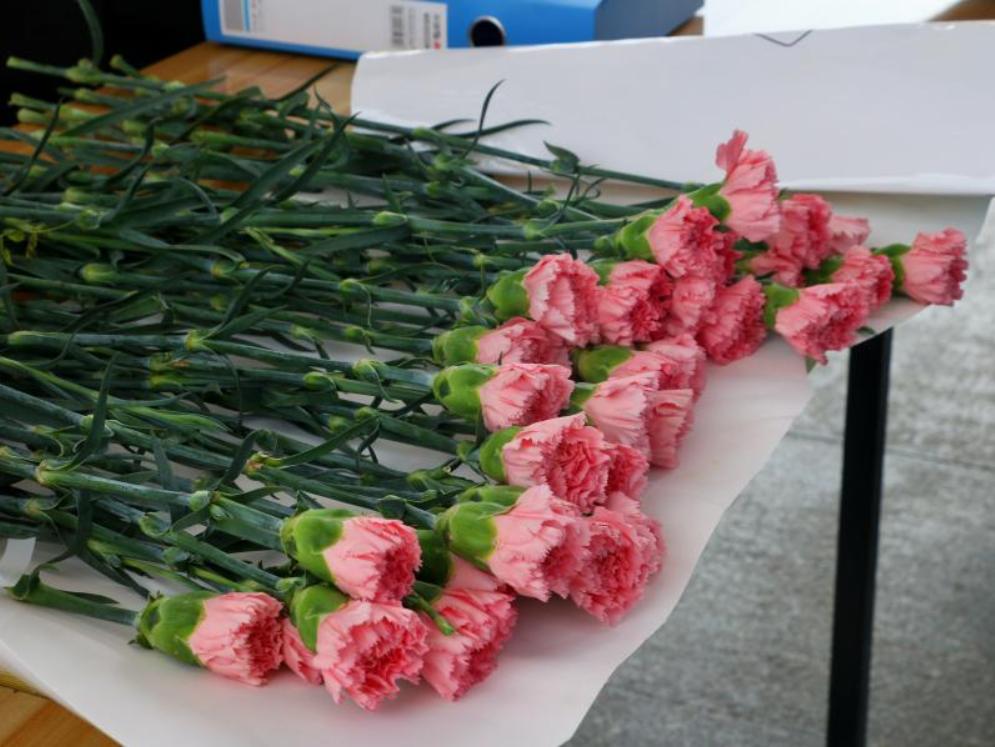 踏入活动现场,便能看到一束束鲜艳的康乃馨整齐排列,每一朵鲜花都传递着对女性最诚挚的赞美。