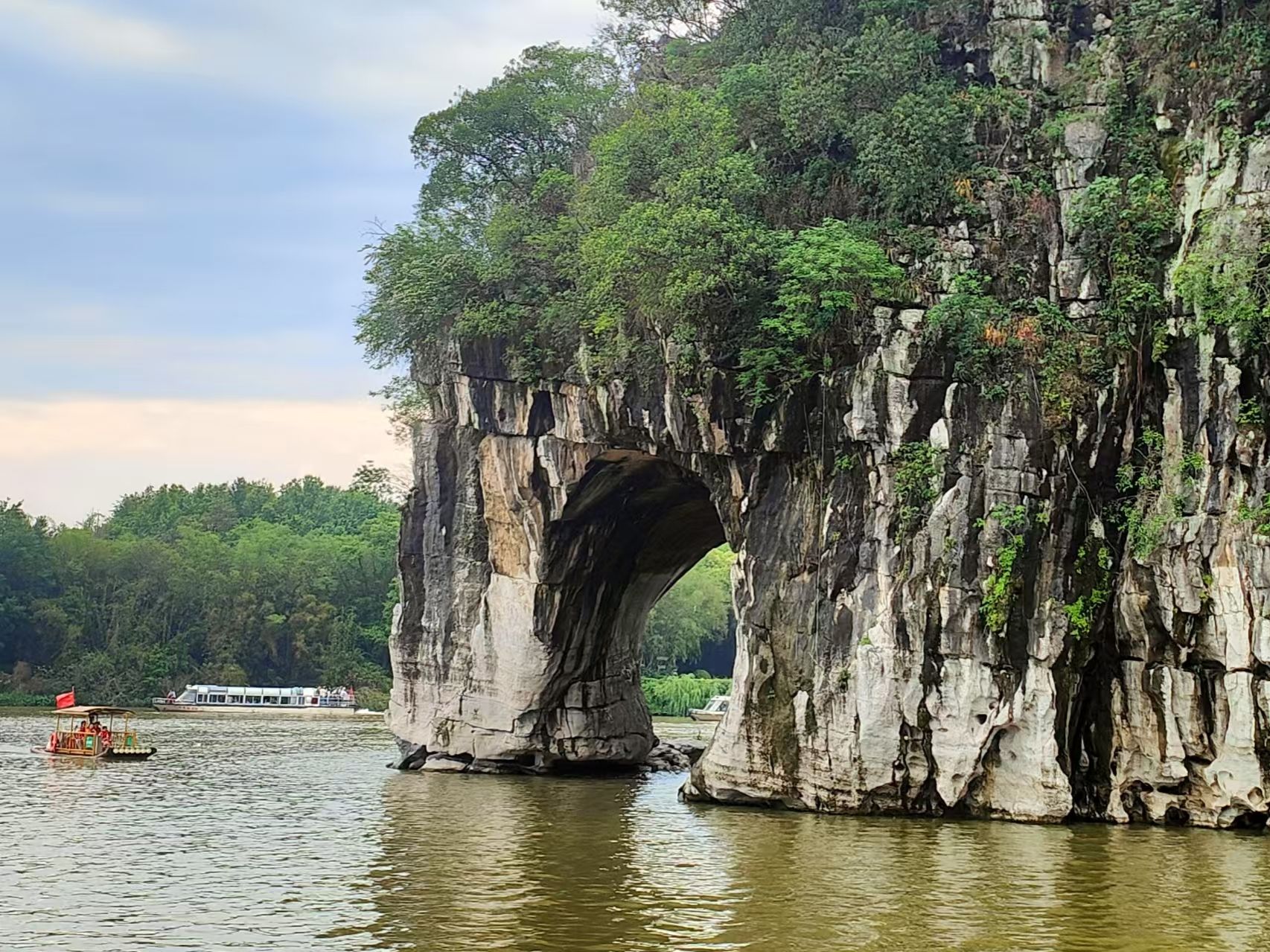 象鼻山,无疑是桂林最具代表性的景点。它位于桂林市内桃花江与漓江的汇流处,远远望去,真的酷似一只站在江边伸鼻豪饮漓江甘泉的巨象,形态逼真,令人称奇。当我们走近,更是被它的雄伟和独特所震撼。象鼻与象腿之间,是一个硕大的圆洞,漓江水从中缓缓流过,形成了著名的“象山水月”奇景。