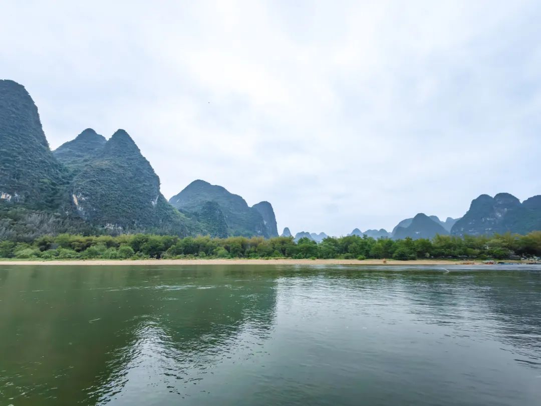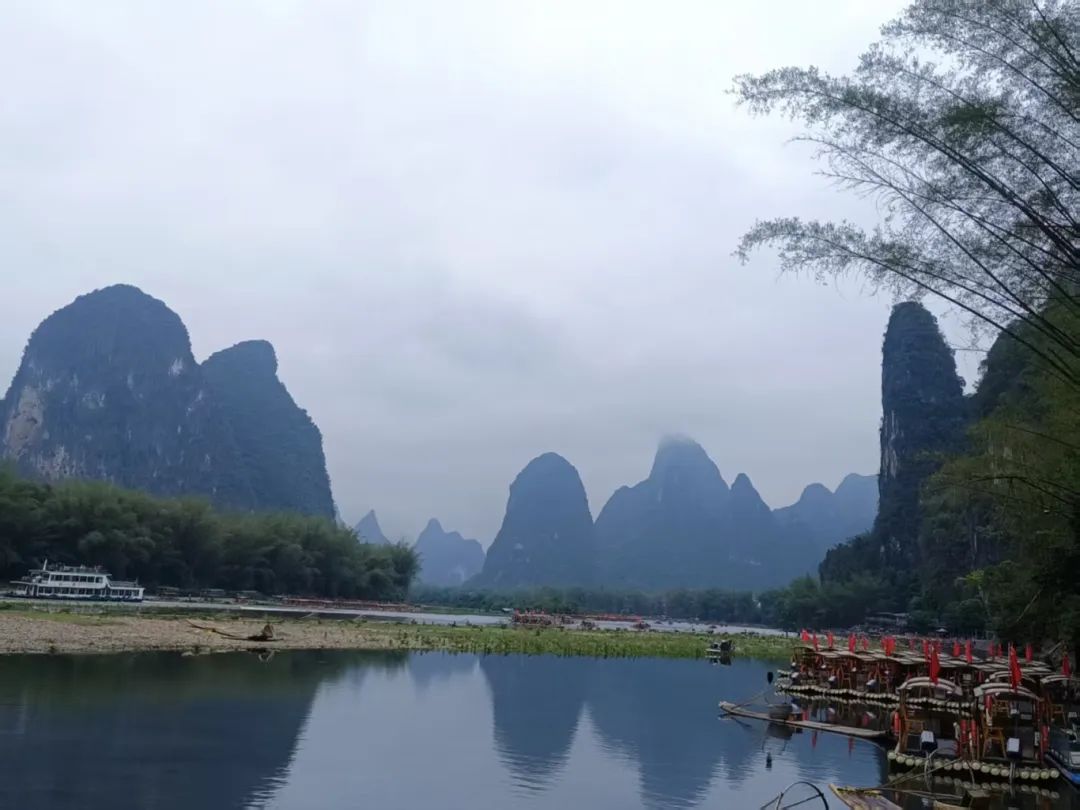 遇龙水韵——这段蜿蜒于阳朔群峰间的碧水,与“十里画廊”相映成趣,竹筏为天然笔墨,又称“山水舟”,长8米,载客2人,创下最原生态的漂流体验;船工为活的画师,手持竹篙,技法娴熟,将每个涟漪都点染成水墨丹青。当朝阳穿透晨雾,整条河道便成了天地间徐徐展开的画卷,筏行碧波上,人入画中游。