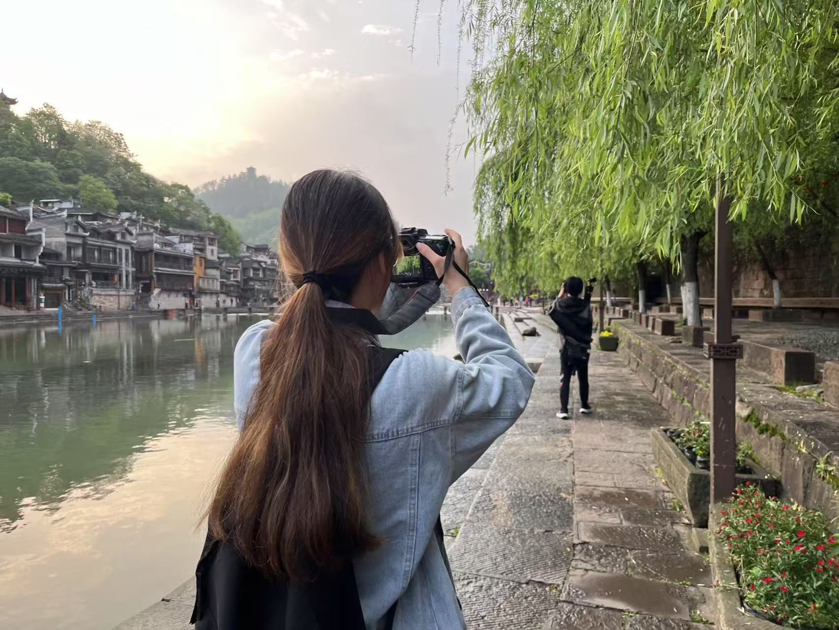 4月23日,2023级网络与新媒体的同学们满怀着对湘西文化的憧憬与求知欲,在见习的第三天,他们肩扛设备,漫步于凤凰古城的古街旧巷。沱江悠悠的水波,古老斑驳的城墙,厚重悠久的非遗文化,都被他们的镜头定格。在这过程中,同学们真切领略到了凤凰古城那独具一格的浪漫与底蕴。