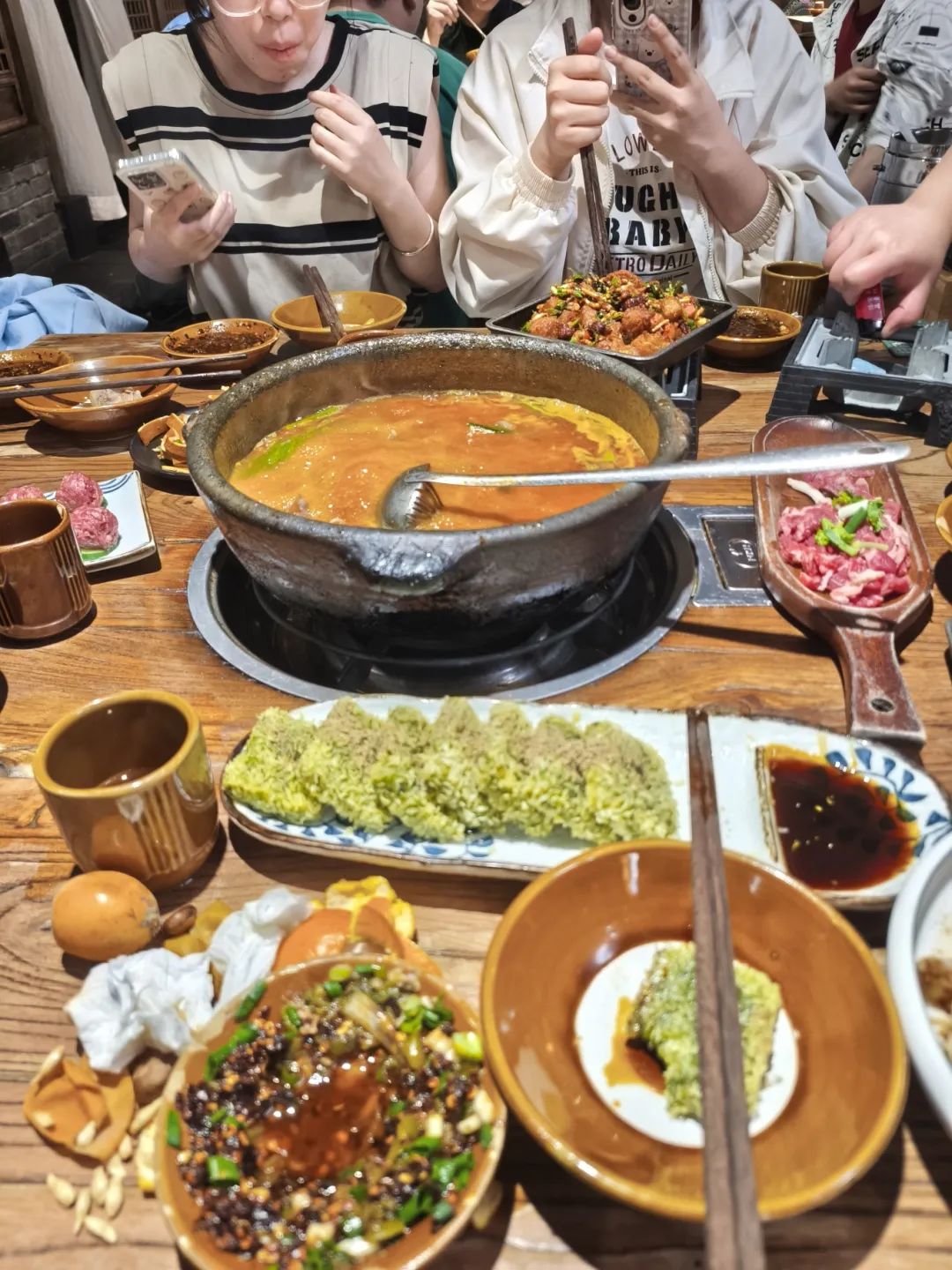 下午2点,我们到达了预订酒店,漫长的行程使我们饥肠辘辘,在放好行李后,大家一致决定立即从酒店出发品尝贵阳特色美食——酸汤牛肉火锅。滚滚热气洗却了我们的疲惫与饥饿,酸与辣在舌尖交缠,折耳根的独特味道也令人印象深刻,难以忘怀。