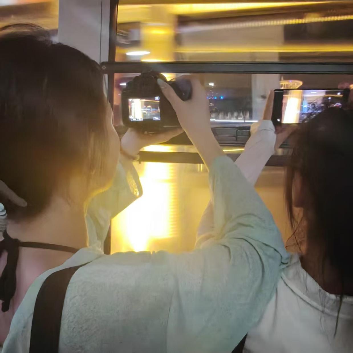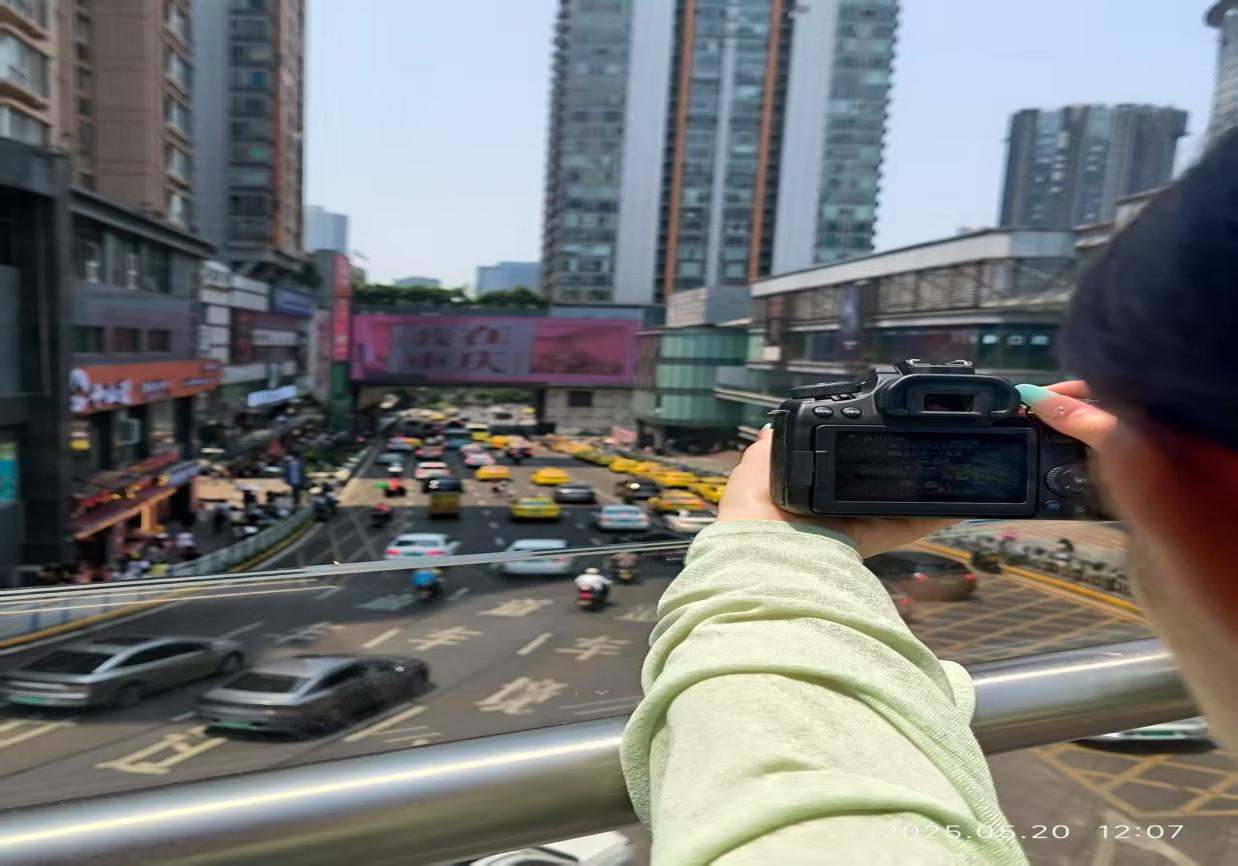 今天我们小组主要是拍摄视频里需要的空镜,主要拍了18梯、轻轨穿楼、观音桥、长江索道等。中午吃了小组的第一顿火锅,后来到重庆非遗体验中心进行了体验——拓印、剪纸、绘画。结束后回到酒店休息调整。晚上来到下浩里周边进行了车流涌动的延时拍摄。在拍摄过程中我们也遇到些许困难,中午在烈日下扛着设备穿梭在人潮拥挤的街道,重庆街道的复杂也给我们的小组带来了不小的打击。总之在重庆第二天见习中,有苦也有甜。