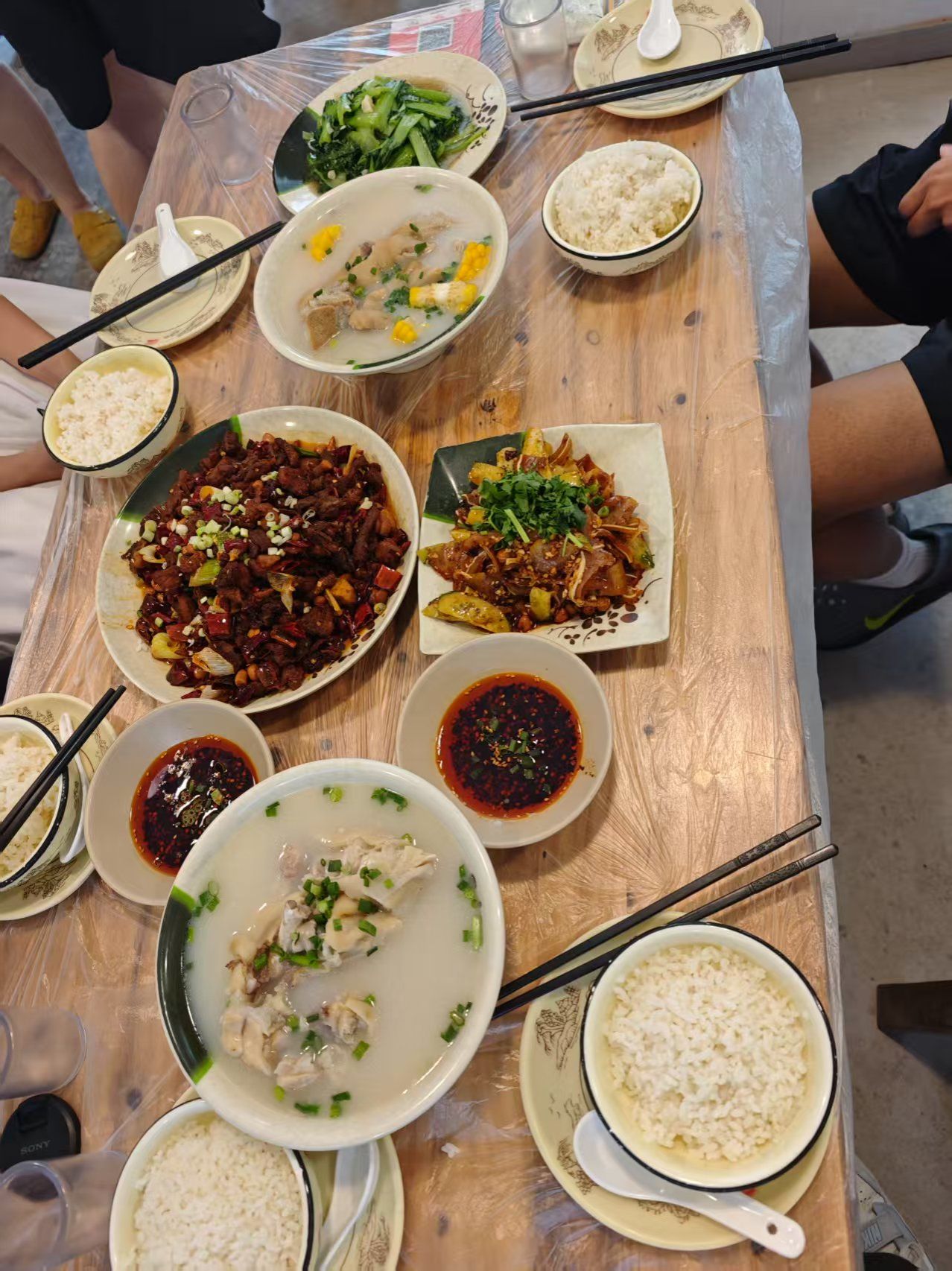 寻找重庆的烟火气息,我们途径“老妈蹄花”的店铺,站在店外看到奶白色的汤,软糯的蹄花,点缀着葱花,简单却诱人。让人欲罢不能。成员们闻到了“烟火”的气息走进店铺,点上蹄花感受食客们的快乐。蹄花入口,汤浓肉香,满满的胶原蛋白,让人欲罢不能。食客们无一不是对此赞不绝口。留着对美食的回味,期待下一天的发现。