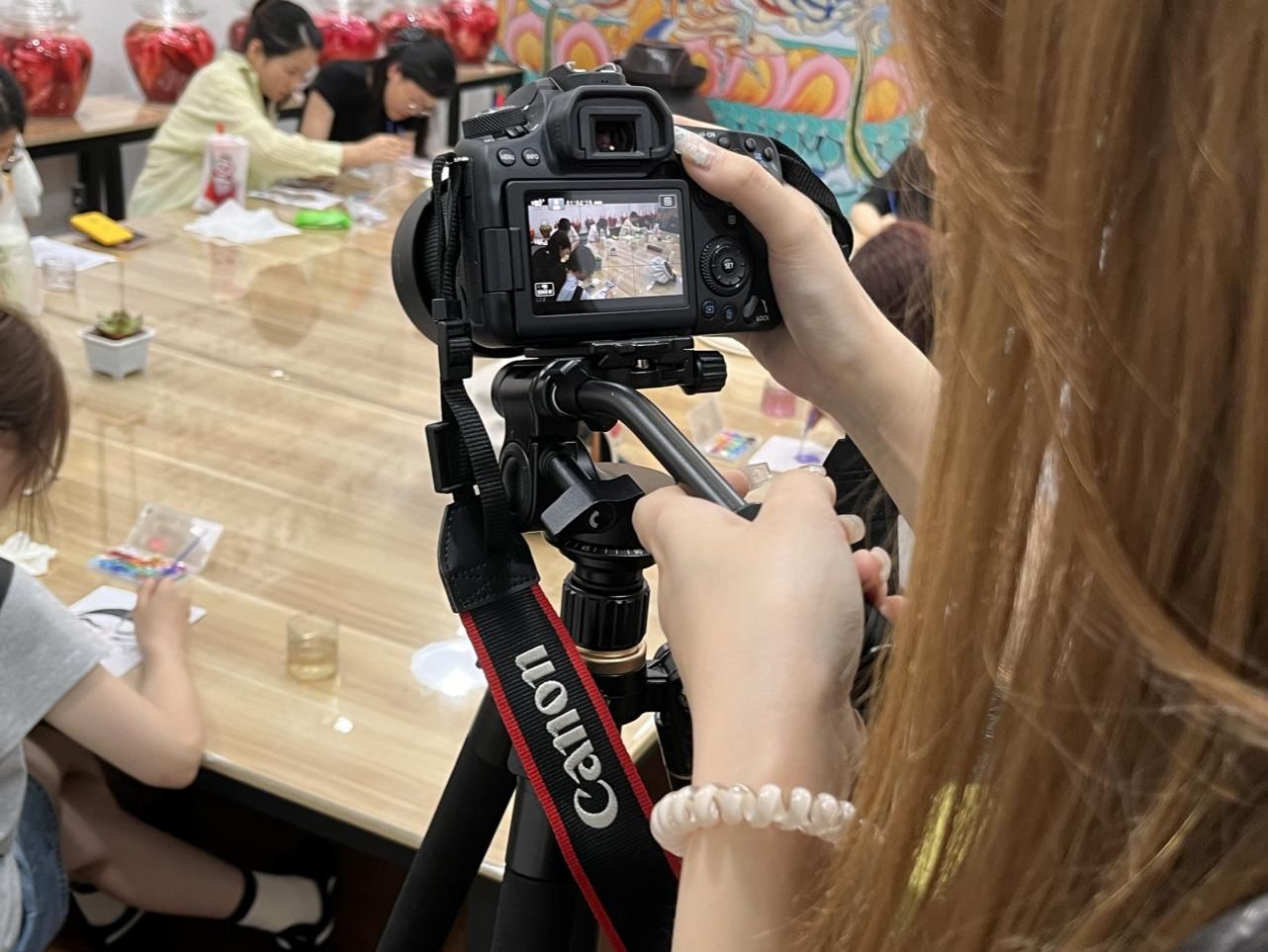 下午,我们前往重庆非遗文化体验中心进行体验拍摄。到达体验中心后,志愿者热情地为我们介绍重庆非遗项目概况,接下来,志愿者带领我们前往二楼,体验非遗项目。流光溢彩,画笔勾勒,天地跃然纸上;墨香弥漫,棕刷轻敲,拓片连接古今。通过今日的体验拍摄,我们深刻体会:非遗之美,不仅在于器物的精巧,更在于匠人们代代相传的执着与热爱。