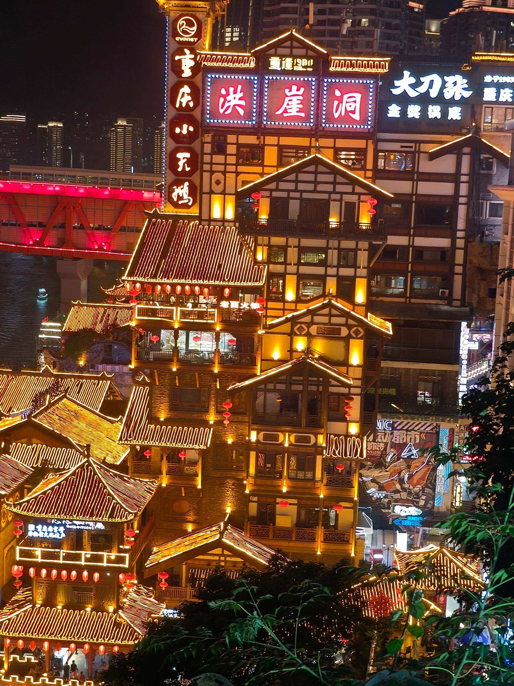 经过老师的指导以及小组成员之间不断的讨论研究,我们终于确定了小组最后的选题——重庆老建筑的改造和商业化,聚焦重庆新旧空间共生与商业改造边界。上午我们小组拍摄了轻轨上的风景以及沿路的建筑,在李子坝我们还拍摄到了轻轨穿楼的瞬间,这种“赛博穿山甲”的奇观是传统与现代技术的结合。下午我们来到了洪崖洞拍摄了日景与夜景。洪崖洞既保留了传统吊脚楼建筑也有着独特的现代工艺建筑,它们相依而建又同时为洪崖洞带来了发展机遇,这让我们更深刻地体会到了重庆城市建筑的新旧交融以及空间共生之妙。