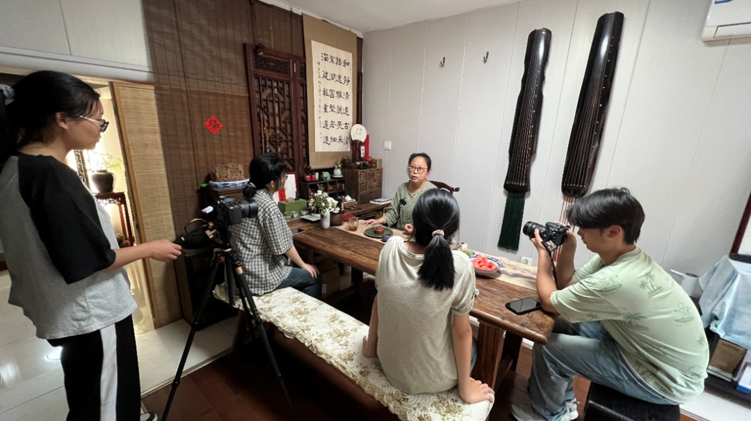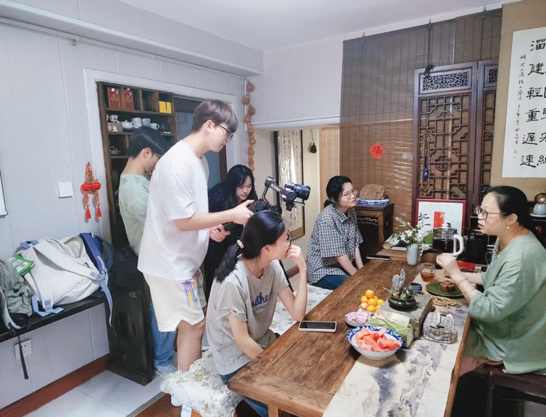 小组成员在拍摄采访刘艳老师