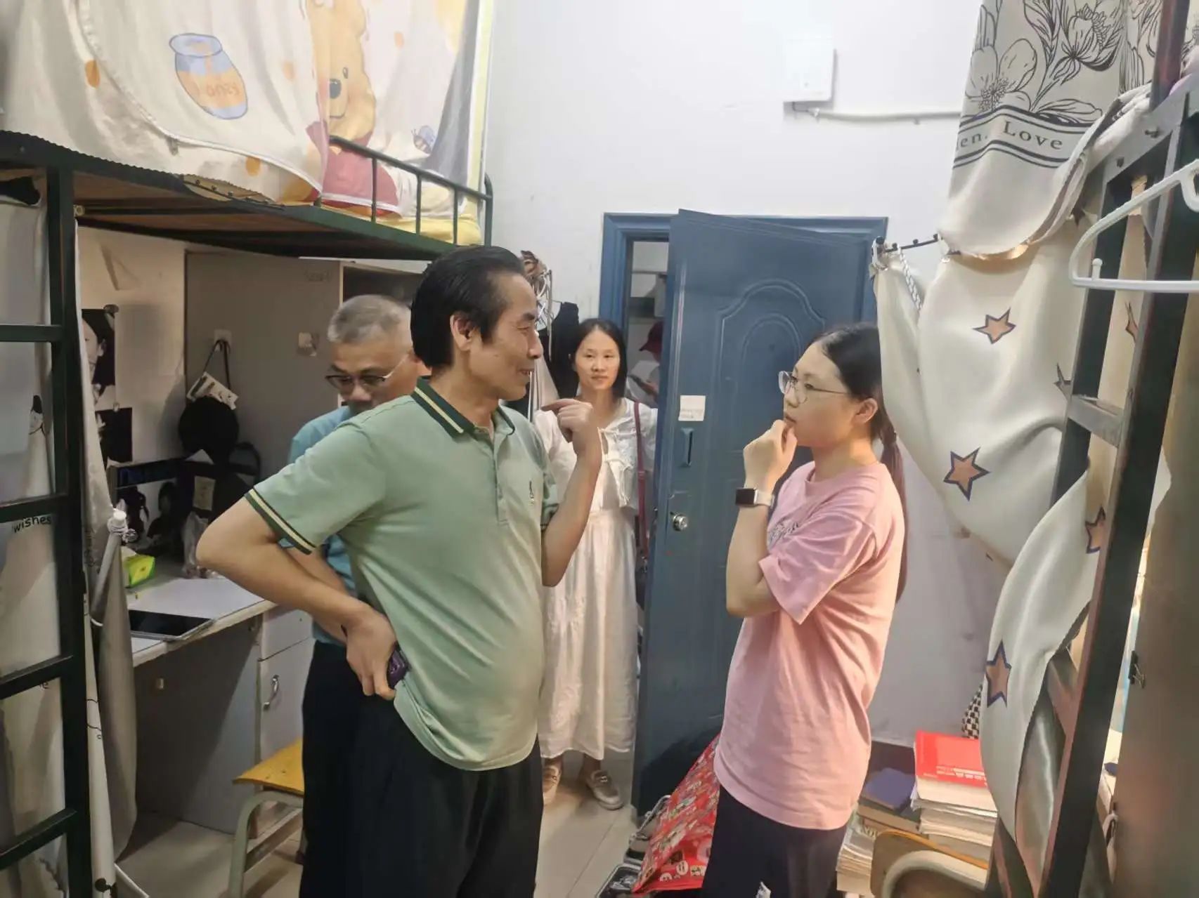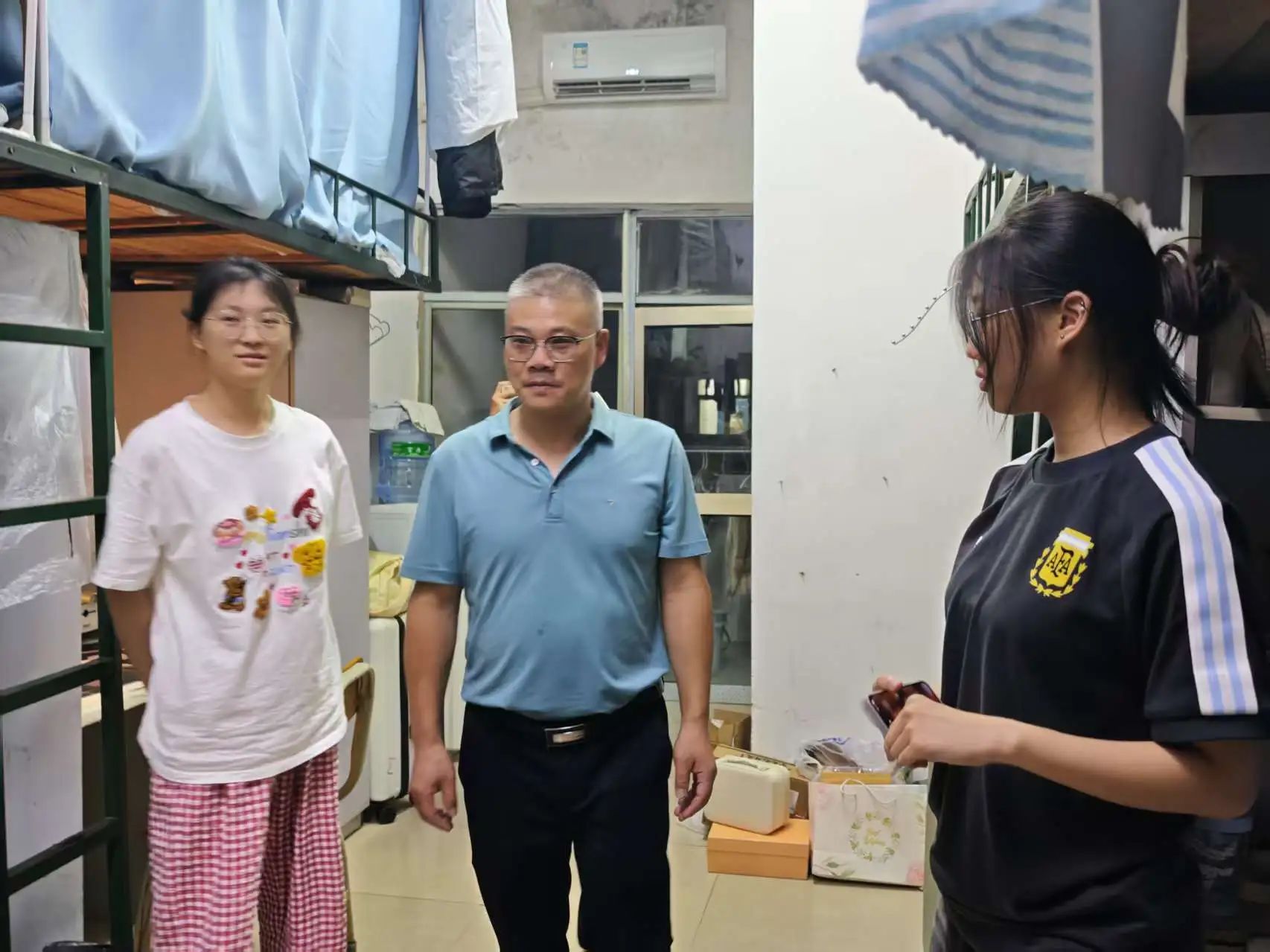 为做好2025届毕业生离校服务相关工作,保证毕业生安全文明离校,6月13日晚,公司党总支书记彭晖、经理彭军辉、党总支副书记董自雄、副经理邓庄、副经理罗兵及辅导员刘国杰带领员工干部前往毕业生宿舍看望在校毕业生,传递公司的关怀与祝福。