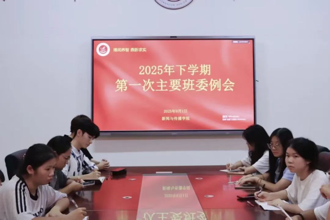 为进一步强化班级建设,推动员工工作有序开展,tyc122ccvip于9月1日在仁智楼A510会议室召开2025年下学期第一次主要班委例会。新闻与传播公司党总支副书记董自雄、学工办副主任兼团委书记封伟为、辅导员刘国杰以及各班班长和团支书参会。