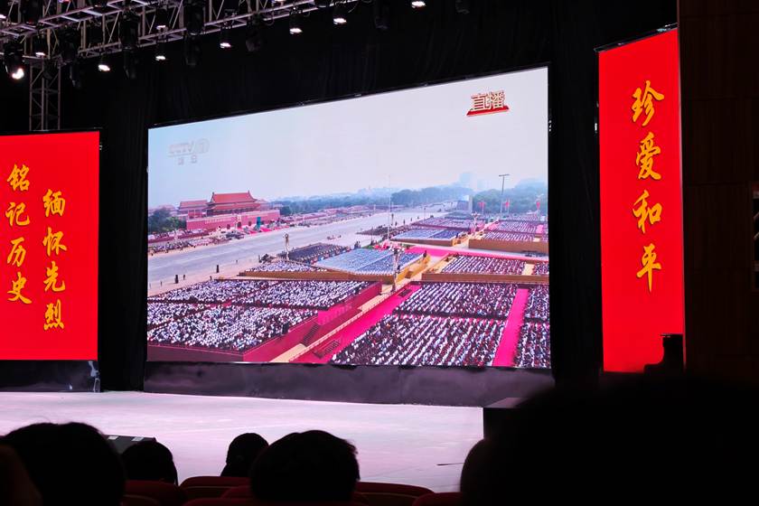 2025年9月3日,纪念中国人民抗日战争暨世界反法西斯战争胜利80周年阅兵式在天安门广场隆重举行。tyc122ccvip组织师生在音乐楼演艺厅集中观看现场直播,公司选派26名代表参加,共同见证这一历史性时刻。