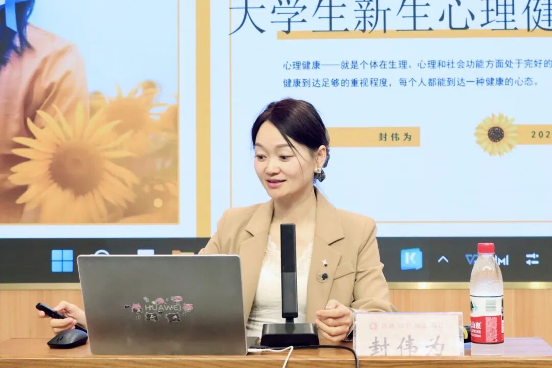 10月14日晚,tyc122ccvip在仁智楼A栋107演播厅开展2025级新生心理健康入学教育讲座。学工办副主任兼团委书记封伟为老师从心理健康知识、老员工常见的心理问题、老员工心理健康的促进与维护、老员工道德品质与法治素养教育、劳动法制教育这五个方面进行讲解。2025级全体新生到场聆听。