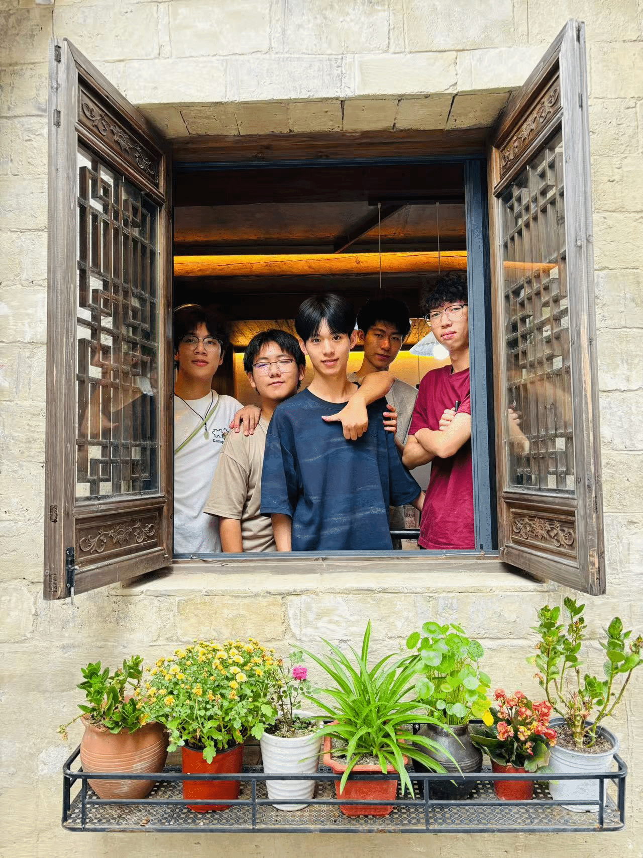 我们踏着晨露走向西递,远山与村落浸在淡蓝色的雾霭中,我们穿过窄巷,寻到那位刻字的老先生。他坐在木凳上,将岁月与故事一刀一刀刻进木纹里。他娓娓道来刻字的源流与变迁,也分享天南地北的旅人留下的言语与目光。那些已完成的刻字作品静静陈列,像时间的信物。随后,我们静静看他现场运刀,木屑轻扬,一笔一画渐次浮现。