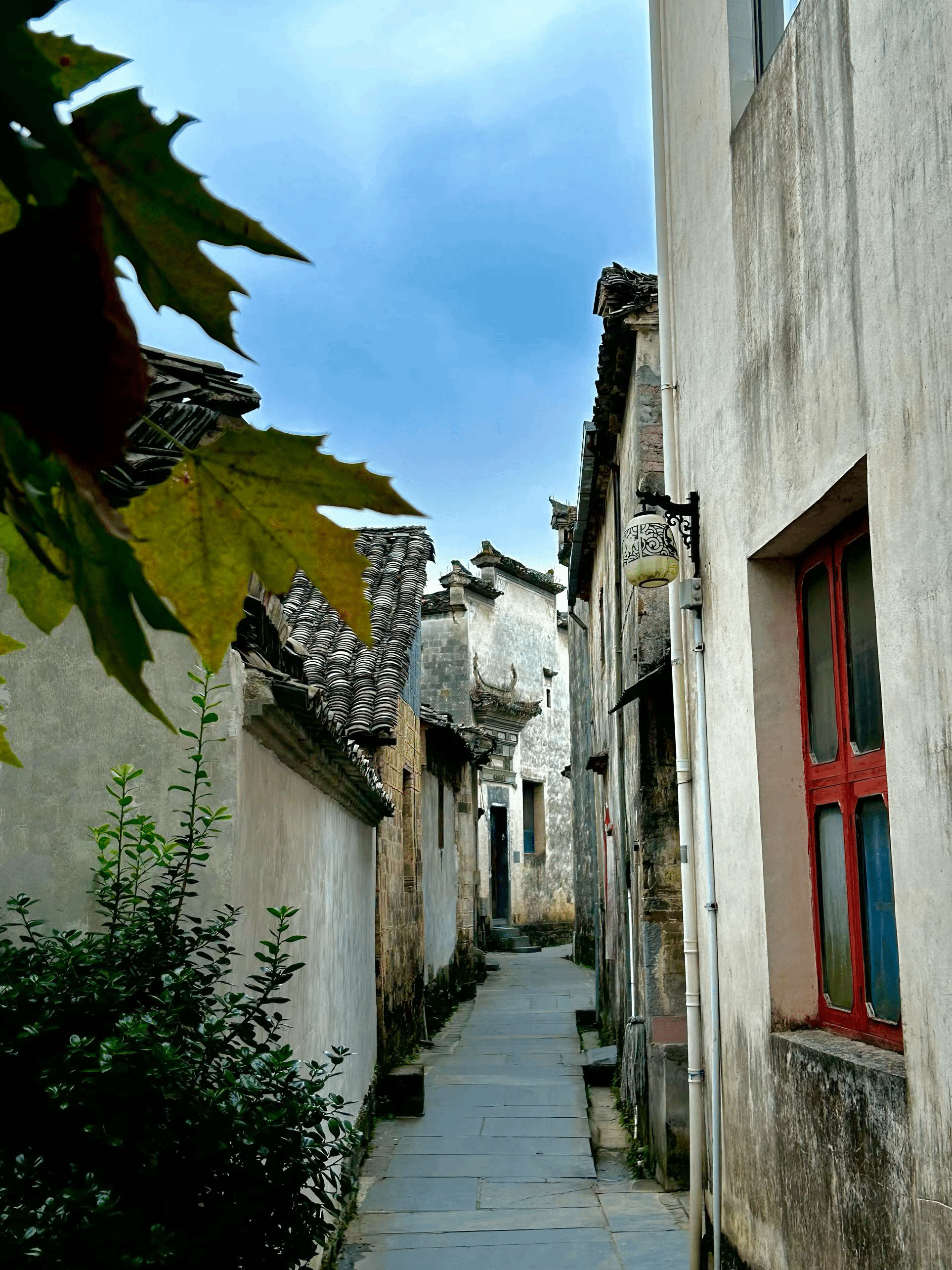今天的主要任务就是深入这片徽州故地,用脚步丈量,用心去感受。我们避开了游人如织的主干道,刻意钻进了那些纵横交错、仅容一人通过的小巷。青石板路被岁月磨得温润光亮,两侧是高耸的马头墙,将天空裁剪成狭长而富有韵律的线条。我们时而驻足,观察村民在自家门前溪流浣洗的生活场景;时而好奇地探访一个不起眼的古老门楼,辨认上面模糊的砖雕纹样。