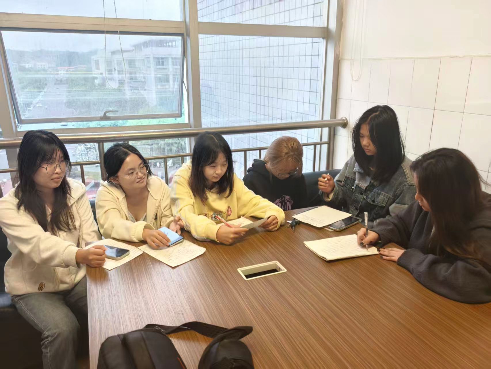 午后我们借公司设备后,小组成员齐聚一堂。大家围绕采访提纲各抒己见,让问题的设计更具深度