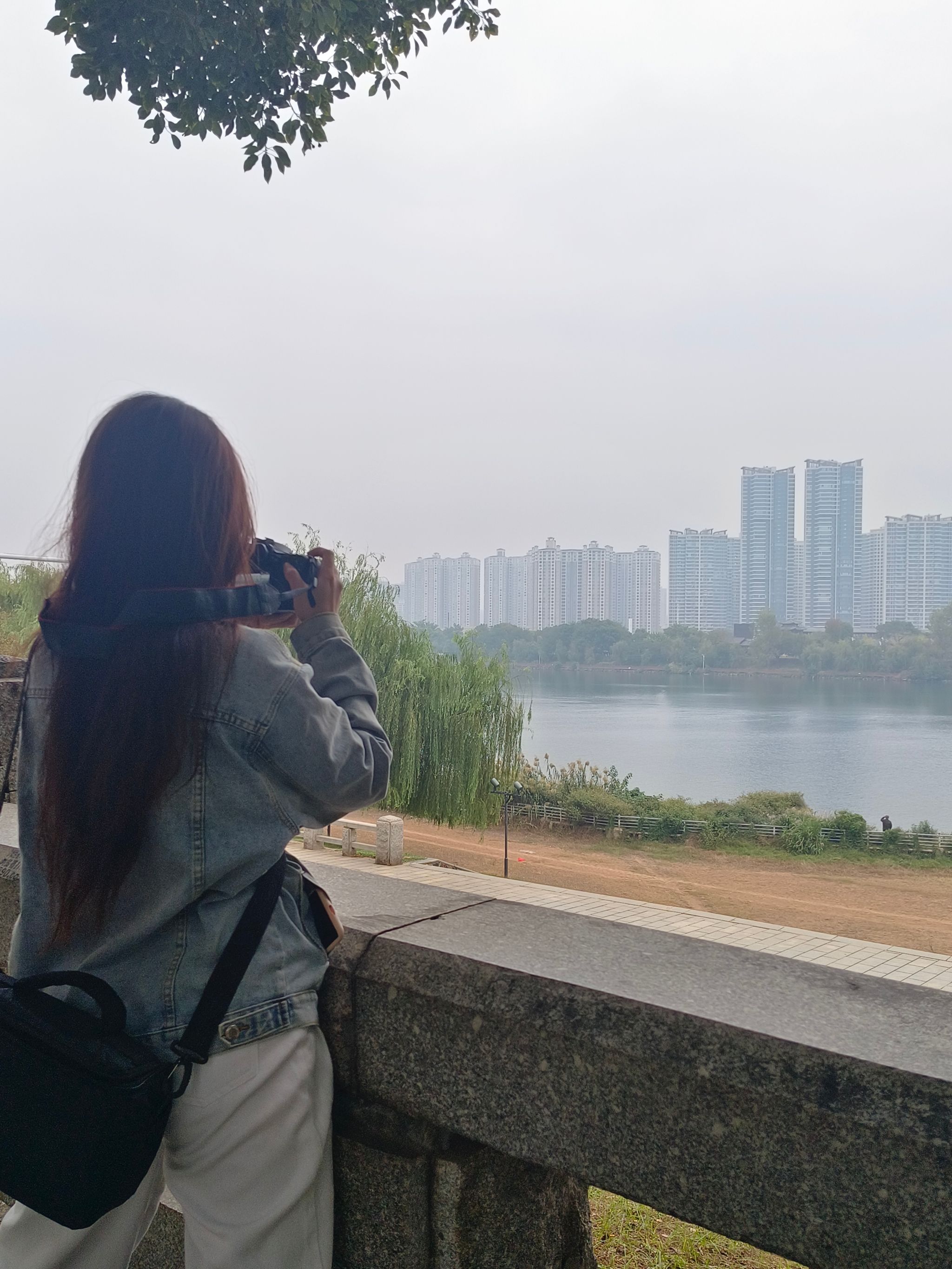 沿着风光带慢慢走,仔细观察亲水平台在灰天里的样子——没有晴天的透亮,却多了份雾蒙蒙的静谧。队员们标记适合拍摄的角度和时段,但进度比预想慢些,没有遇到合适的工作人员作为采访,直到正午才走完核心路段。