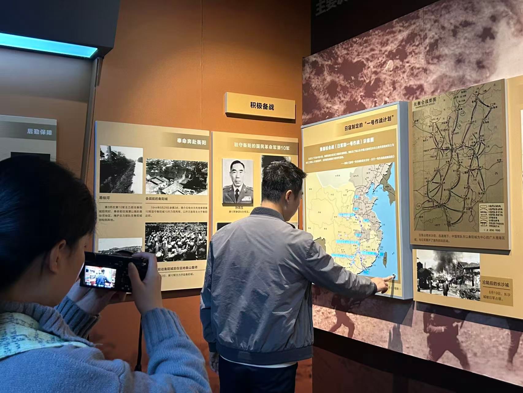 黄辉生动地讲述了1944年那场惨烈的衡阳保卫战。从守军将士仓促应战的危急局势,到军民同心坚守城池的顽强抗争;从巷战中的浴血拼杀,到弹尽粮绝时的绝不退缩,每一个细节都令人动容。他指着墙上的地图,讲述着将士们以寡敌众、宁死不屈的英雄事迹,那些年轻的面庞在战火中绽放的光芒,跨越时空依旧震撼人心。