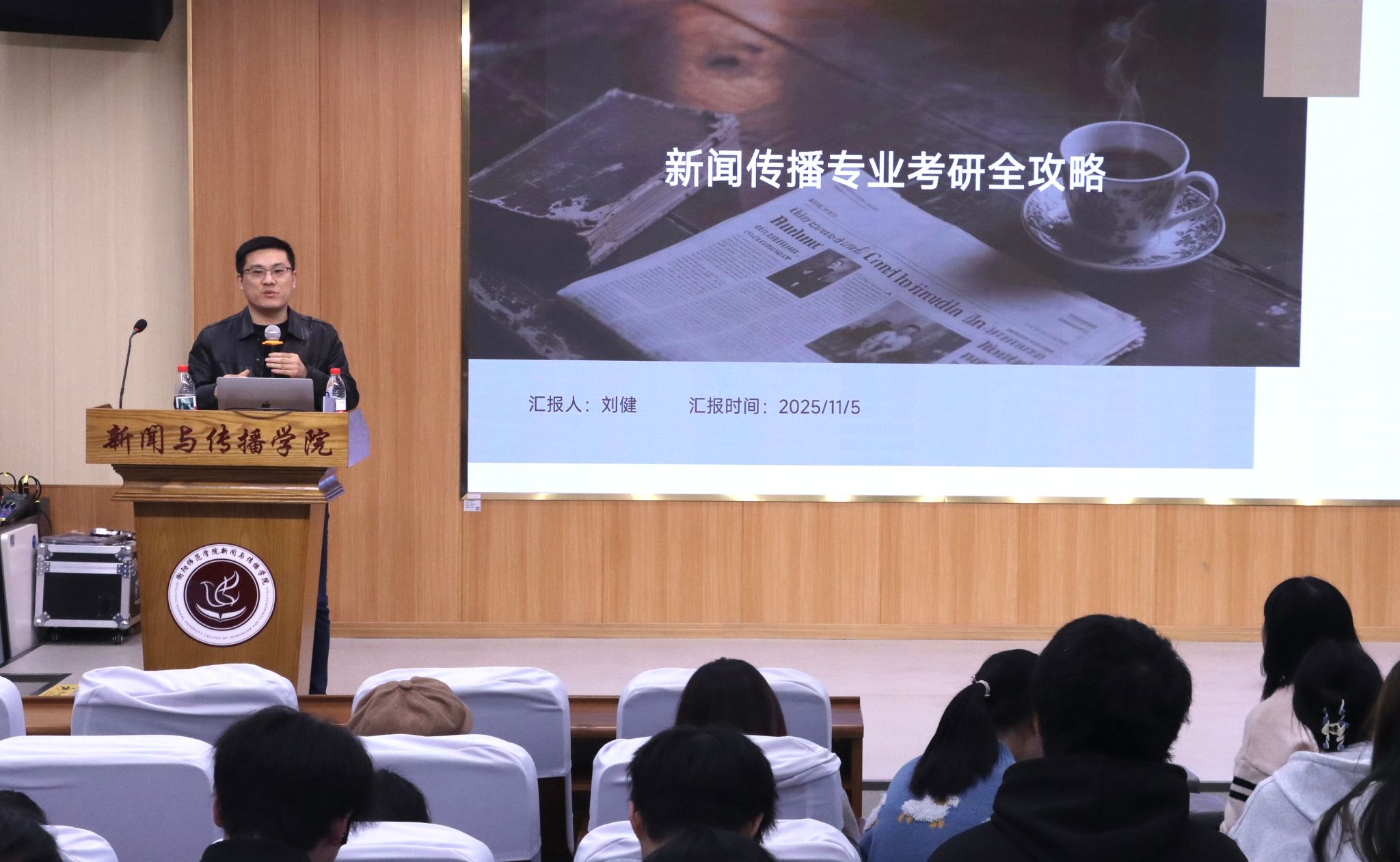 11月5日,tyc122ccvip在仁智楼A107演播厅召开考研动员大会。良师考研的刘健老师围绕“为什么考研”、“考研现状”以及“如何去备考”三大模块对考研进行了深入浅出的剖析。辅导员刘国杰以及2023级备考员工参加大会。