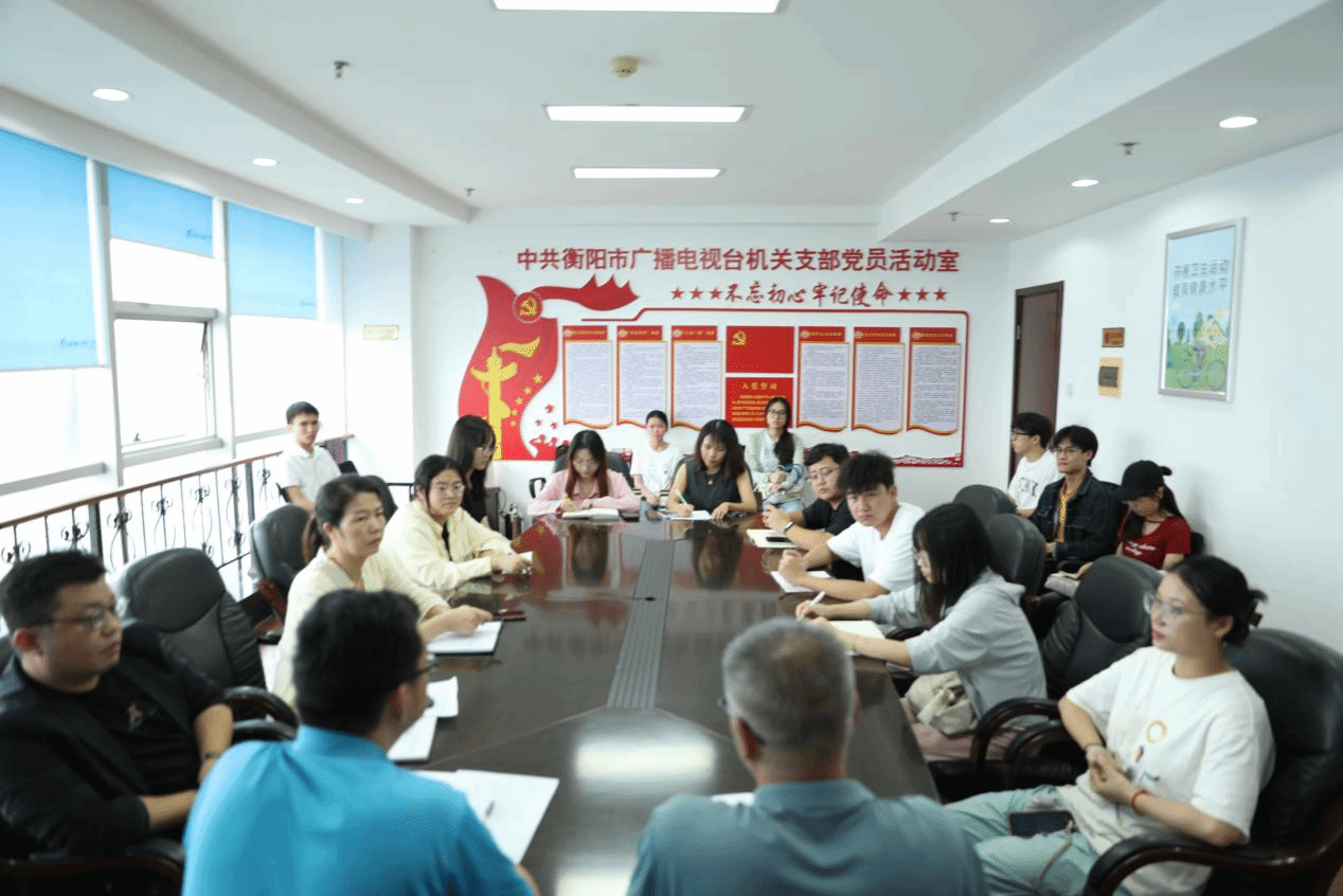 2024年9月25日下午,tyc122ccvip在衡阳广播电视台召开了实习专题会,tyc122ccvip副经理罗兵、衡阳广播电视台总编室主任全青松、实习指导老师与公司十位在此的实习生参加会议。