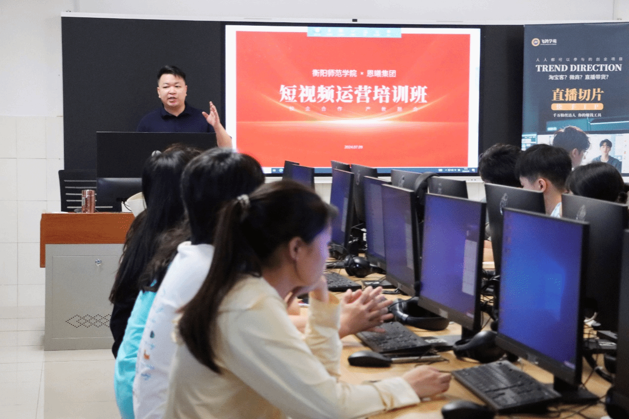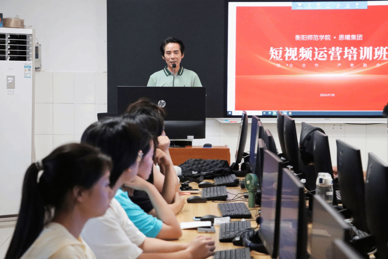 为了提高员工专业实践能力,促使员工与业界紧密对接,7月9日至11日,tyc122ccvip与恩曦集团在文综楼B607多媒体教室开展了为期三天的短视频运营培训班,这是公司践行校企合作产教融合的又一举措。tyc122ccvip经理彭军辉、副经理罗兵和衡阳恩曦文化传媒有限公司副总经理何成出席了本次培训班的开班仪式。