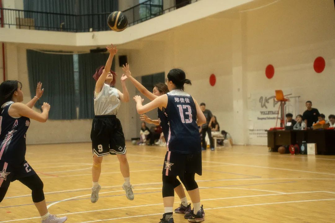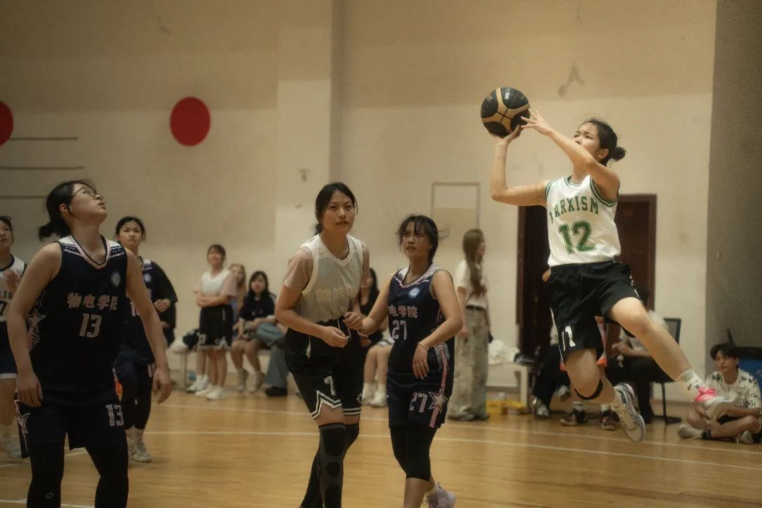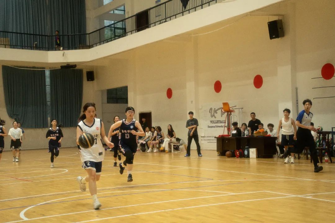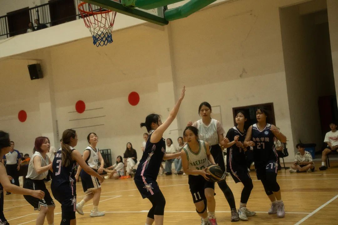 2025年5月10号下午五点,女子篮球比赛(新传VS物电)在东校区篮球馆室内2号场地展开。