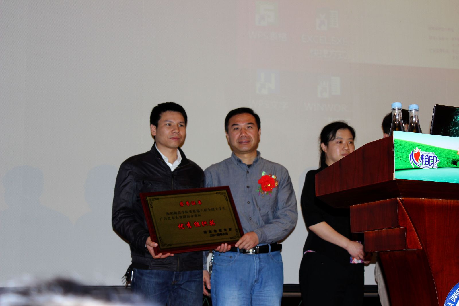启动仪式共分三个阶段。第一阶段由长沙理工大学艺术设计公司经理何辉教授主持。湖南省教育厅高教处唐利斌处长首先致辞,长沙理工大学教务处刘扬处长介绍长沙理工大学在近年大广赛中的优异成绩和组织经验,随后湖南大学新闻传播与影视艺术公司经理彭祝斌教授宣读第六届大广赛湖南分赛区组织奖文件,并对获奖单位进行颁奖。公司荣获第六届全国老员工广告艺术大赛湖南分赛区优秀组织奖,冯林老师代表公司领奖。这不仅是对公司上届大广赛的极大肯定,也是对本届大广赛一个很好的鼓励。