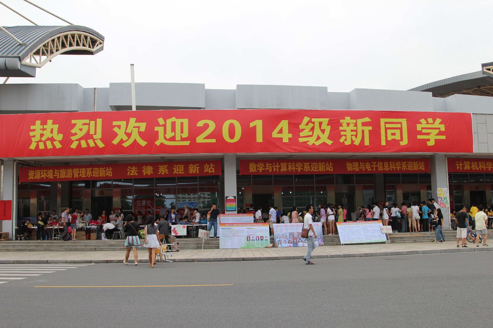 早在迎新工作开始之前,我系就着手布置迎新活动,对新生引导和安排流程进行了统一规范。员工会同学制作了精美的展板展示我系活动、风采及入学日程安排作为指引辅助,教学楼和宿舍楼上也悬挂起海报和横幅。