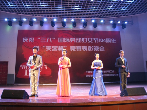 3月6日,公司工会主办、我系承办的2014年庆祝“三八”国际劳动妇女节104周年暨“芙蓉杯”竞赛表彰晚会于新校区音乐厅隆重举行,湖南省教育工会女职工委员会主任孙晓红、原公司副经理、工会主席陈杰峰、副经理张登玉、廖北文、李玲玲出席晚会。