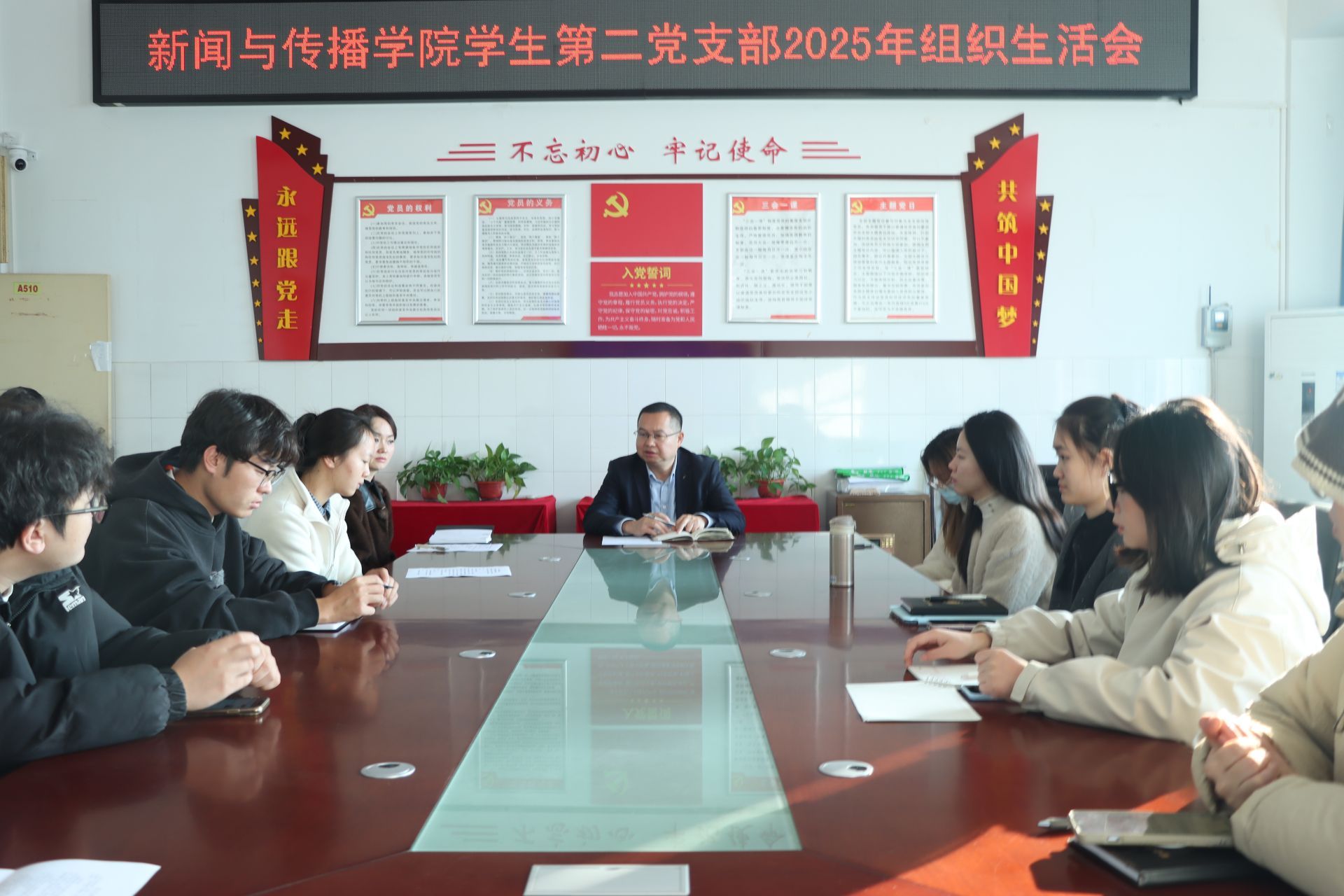 会议伊始,党总支副书记董自雄强调民主评议是党内政治生活的重要实践,要求全体党员将“批评意见”转化为“整改实效”,在学风建设、服务群众中发挥模范作用。