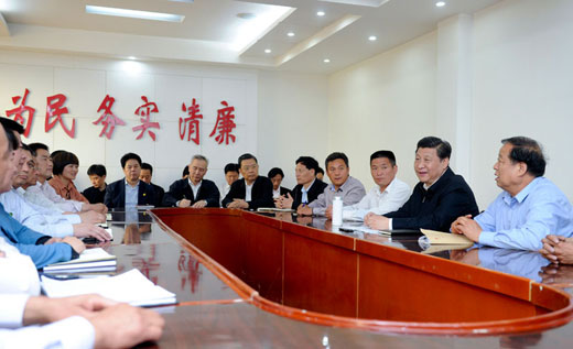 2014年5月9日下午,习近平在河南省尉氏县张市镇同镇村干部和村民代表座谈。新华社记者 张铎 摄