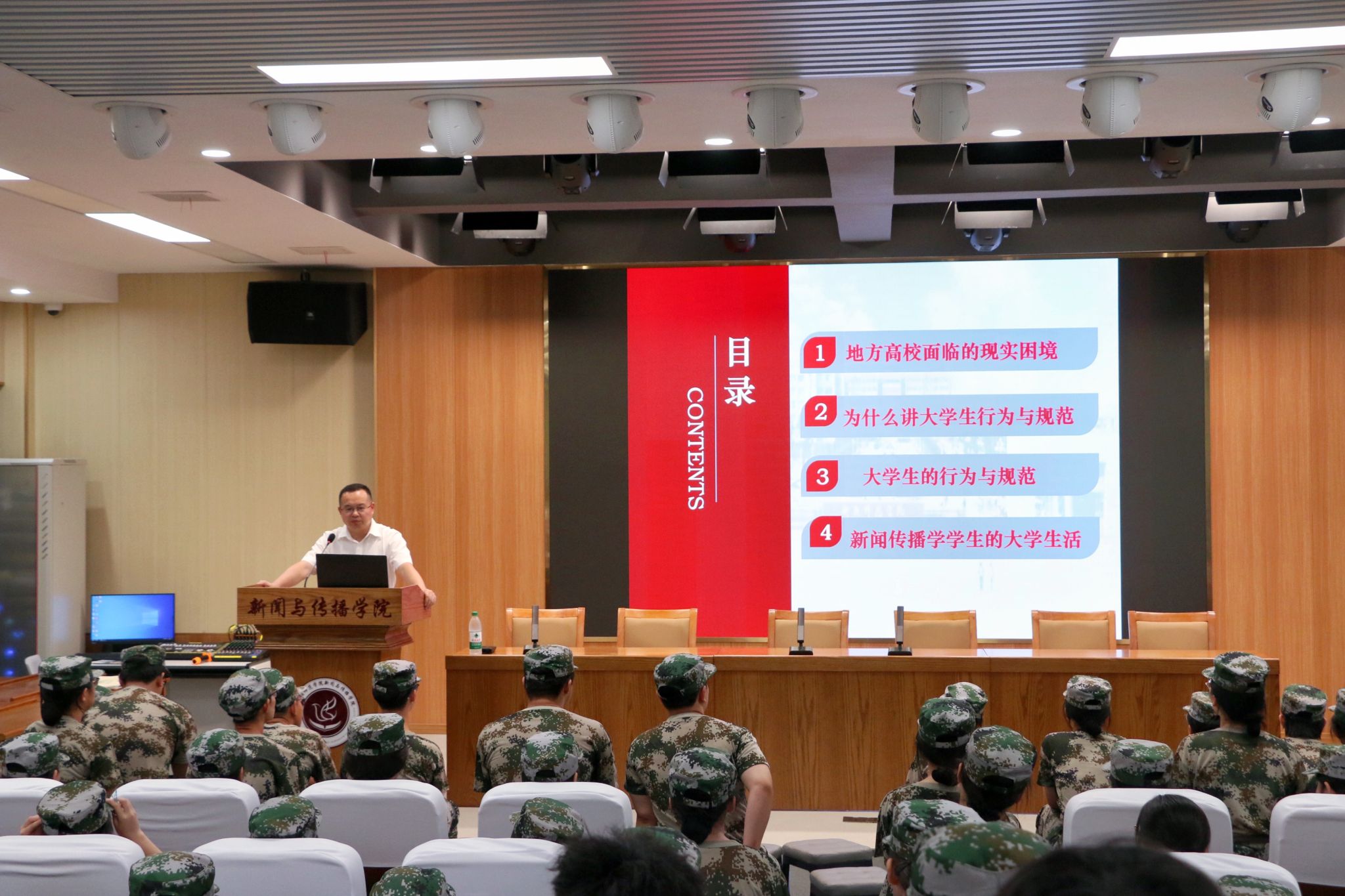 2024年9月13日,tyc122ccvip于文科楼一楼演播厅顺利举行了主题为“地方高校新闻与传播学员工日常行为规范”的讲座,新闻与传播公司党总支副书记董自雄担任主讲人,2024级全体员工到场聆听。